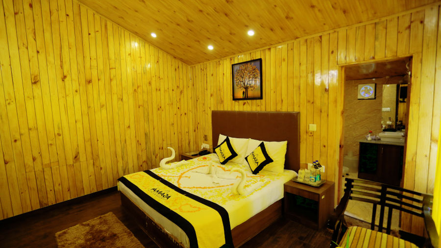 Amara Resorts, Manali a luxurious resort invites you to enjoy the world class amenities, spread over 3,000 square yarda covered with orchards and fields. Although not away from the town, it is secluded enough to offer sufficient privacy and peace to its guests. Located in Kullu Nagar, Manali Road, it is surrounded with beautiful mountains & lush greenery.